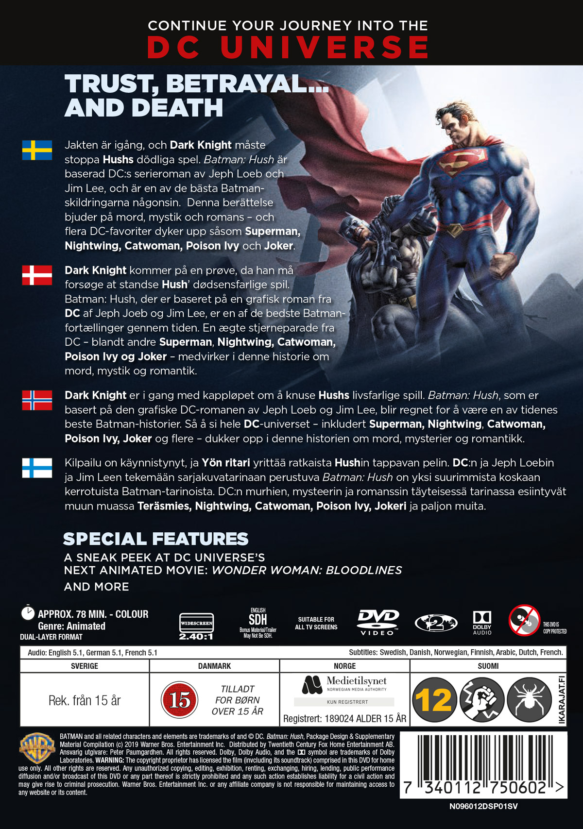 Textning: Danska, Finska, Norska, Svenska