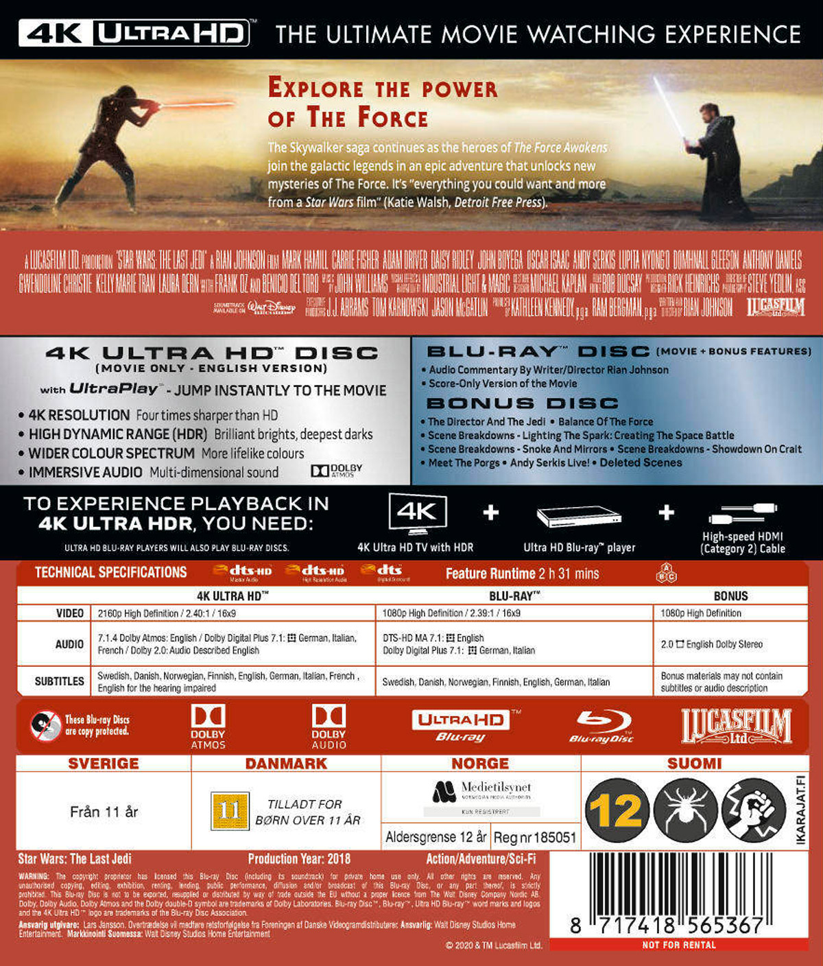 Movie - Star Wars: Last Jedi Uhd/Scandi 2020